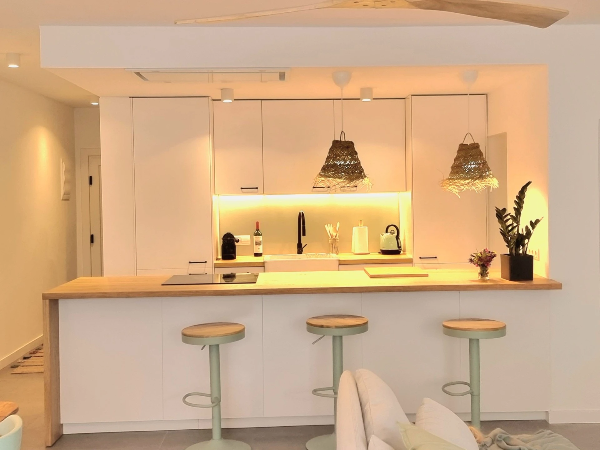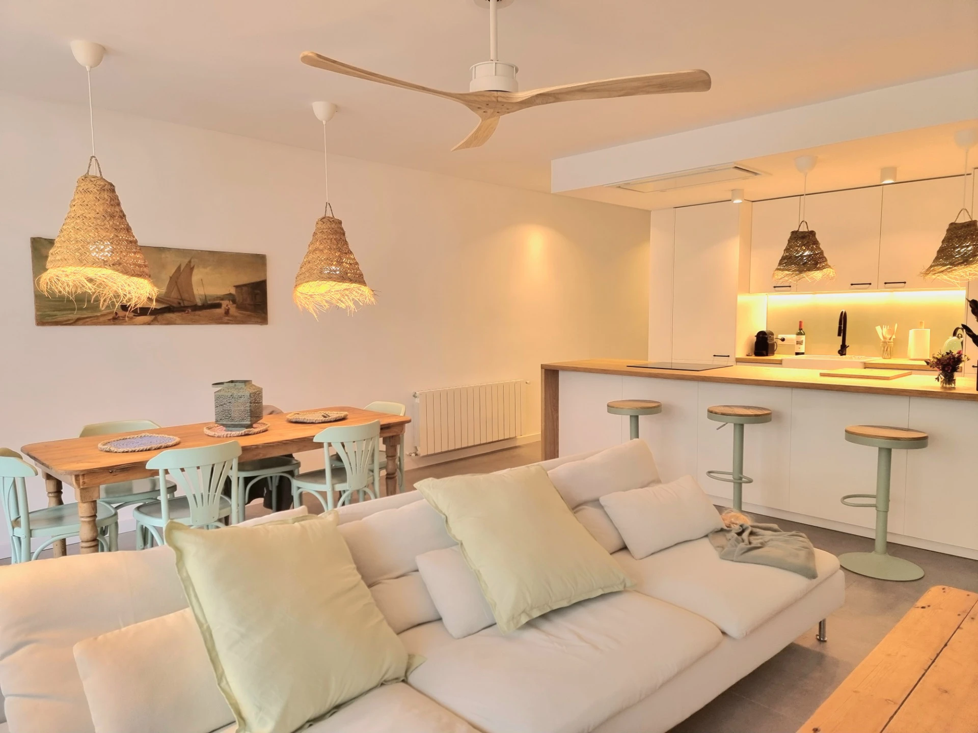 En este proyecto de arquitectura en Sant Pol de Mar, nuestros clientes, una pareja de jubilados, adquirieron un apartamento antiguo de 70 m² cerca del mar, con el objetivo de transformarlo en un espacio más amplio y luminoso. Nuestro enfoque principal fue la optimización del espacio y la entrada de luz natural, aspectos esenciales para crear un ambiente cálido y acogedor.